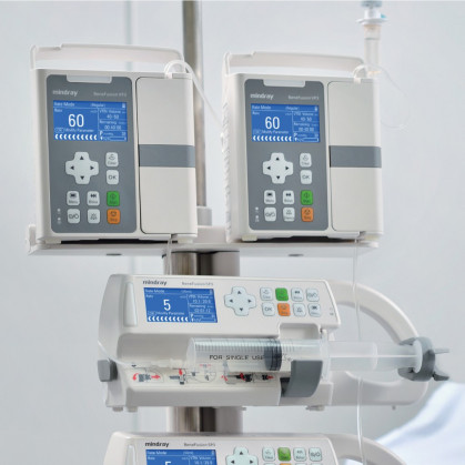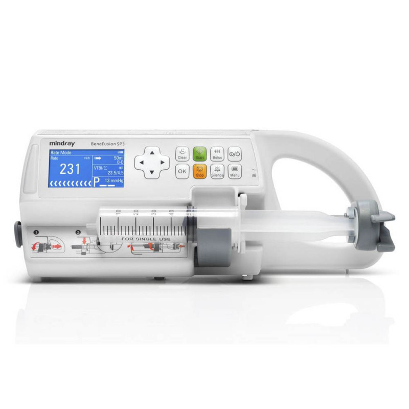 Шприцевой насос Mindray BeneFusion SP3 — компактный, лёгкий, простой в управлении и точный шприцевой насос. Подходит для использования в машинах скорой помощи. Может применяться для новорожденных благодаря высокой точности (плюс-минус 2-3 процента в зависимости от скорости потока).